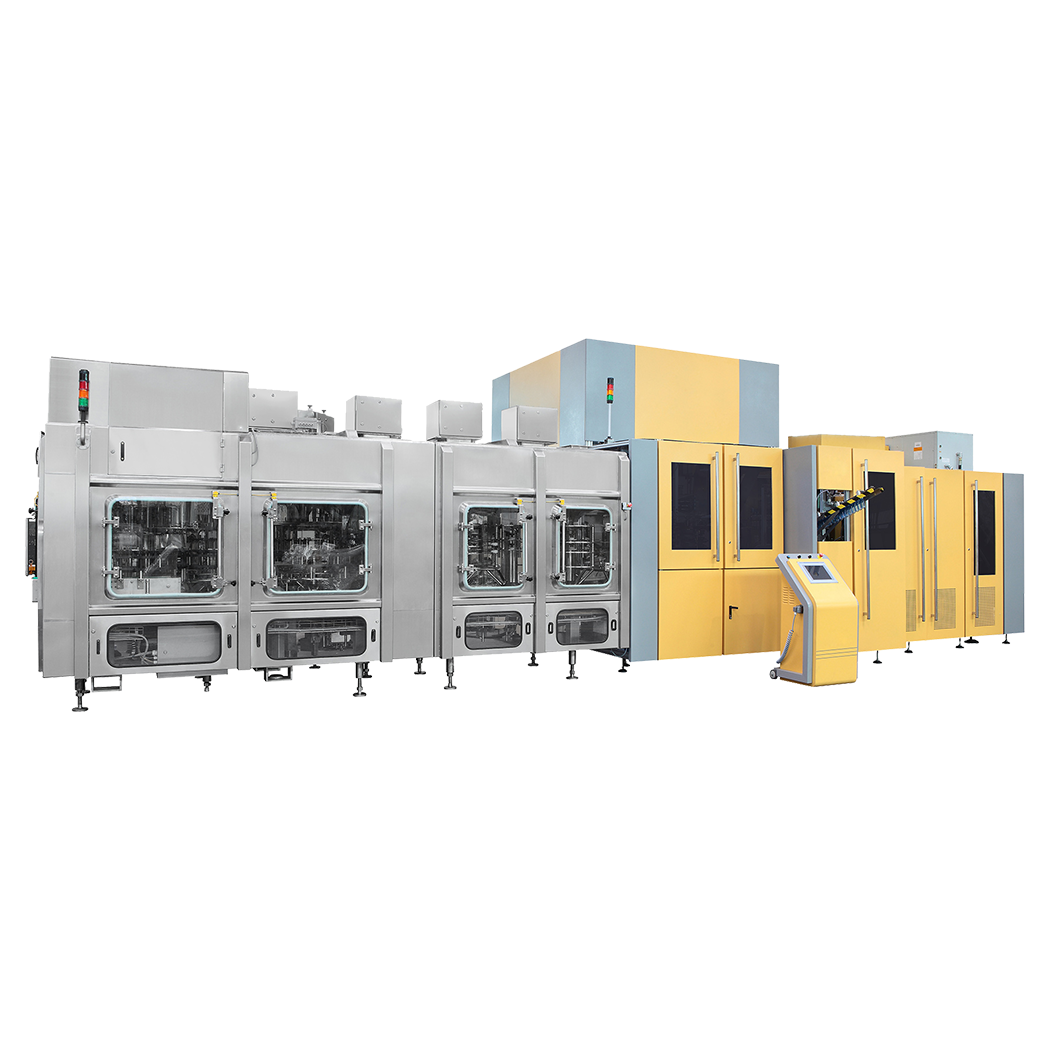 隆寶全新研發的LC系列一加侖吹灌旋設備集成吹瓶、灌裝、旋蓋于一體,設備占地小,能耗低。產品可由瓶胚至成品完全在一臺機內完成,高效、節能、潔凈。